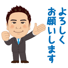 ベーシックな似顔絵風男性のスタンプです。スーツ姿にしているので、お仕事のシーンでもご利用いただけます。