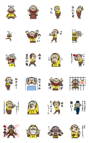オシャレな『赤木』のTシャツを着た動くお猿さんのスタンプです。(赤木猿/アカギ猿)セイコウ より発売
