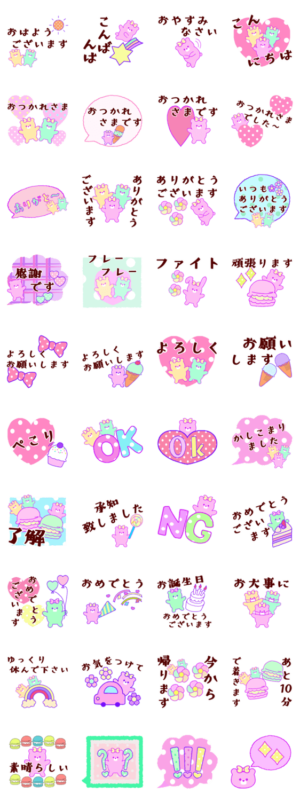 くまゆめかわ/毎日使えるおしゃれパステルカラー/敬語スタンプ/ハート/スイーツマカロン/リボン/水玉/承知致しました/おめでとう/了解/お大事に/ゆっくり休んで下さい