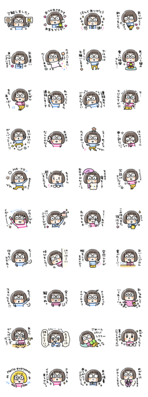 おかっぱめがねのスタンプ/長文のダウンロードはこちら↓