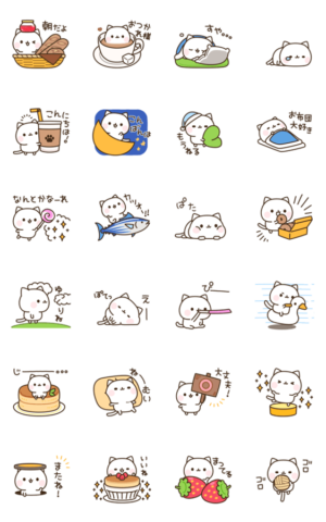 マイペースでのんきな白猫のアニメーションスタンプです♪基本のあいさつはもちろん、ちょっと変わったリアクションもあるので家族や友達との会話に使えるよ!