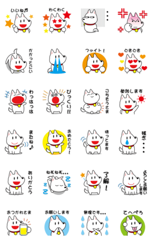 サモエドとハスキーのミックスの「ぶっちょ」こと「部長」君のスタンプです。よろしくお願いいたします。ぶっちょと愉快な仲間たち より発売