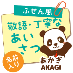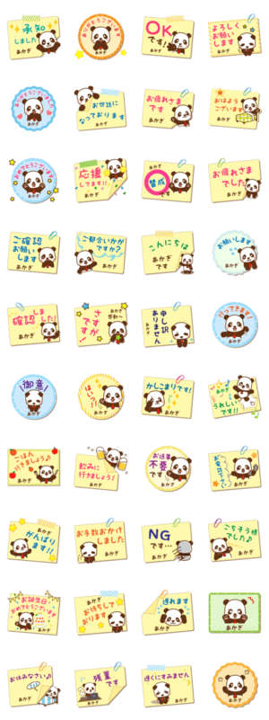 パンダの日常と仕事丁寧敬語挨拶スタンプ/熊猫ふせん風/付箋フセン[赤木/あかぎ/アカギ/垢木/明城/赤井/赤城/赤来/赤鬼]ぱんだ名前入り/おなまえ/苗字姓/業務職場しごとお名前入りスタンプ専用★アイシスデザイン株式会社 より発売