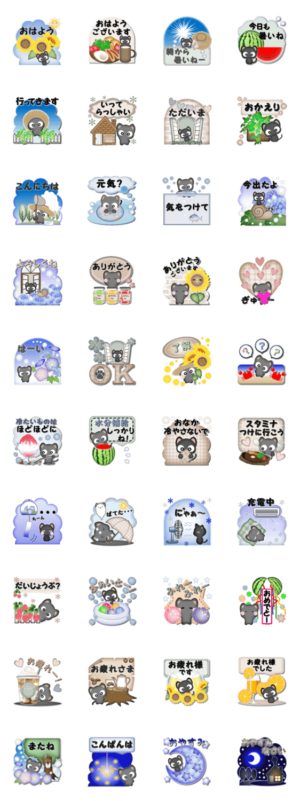 夏に毎日使える黒ねこさんスタンプです。大きめの文字で見やすくしています。ぽてこ より発売