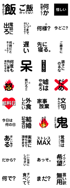 夫婦とは?男らしい鬼嫁の文字だけスタンプ スタンプ情報