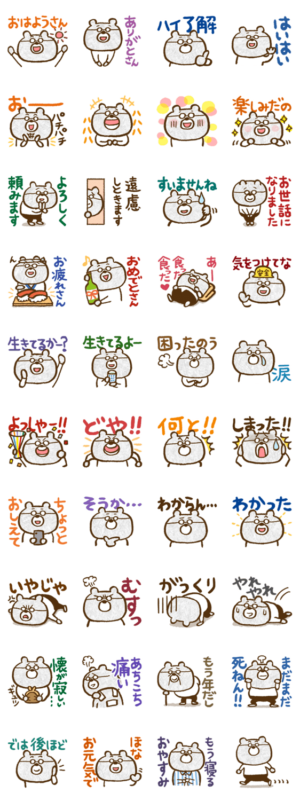 おじいちゃんに贈るスタンプ、おじいちゃんくまさんが「生きてるよー」っていうのはツボります。