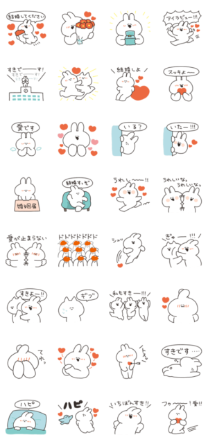 あまえるうさちゃん その3のスタンプは、恋人など大好きな人に送りたくなるスタンプです!とても可愛くて癒されます!
