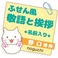 のぐち/野口様用★ふせん風ねこの大人日常マナーと会社仕事丁寧敬語挨拶スタンプ/ネコフセン/猫付箋メモ/お名前入り/なまえ姓苗字/ビジネス職場しごと/サラリーマン業務お名前入りスタンプ専用★アイシスデザイン株式会社 より発売