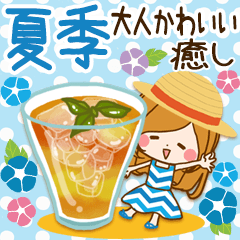 大人女子にぴったり♪暑い季節をたのしく乗り越える夏季スタンプです♪梅雨から夏、真夏〜と大活躍☆素敵な夏を過ごせますように☆「ほのぼのカノジョ」シリーズ
