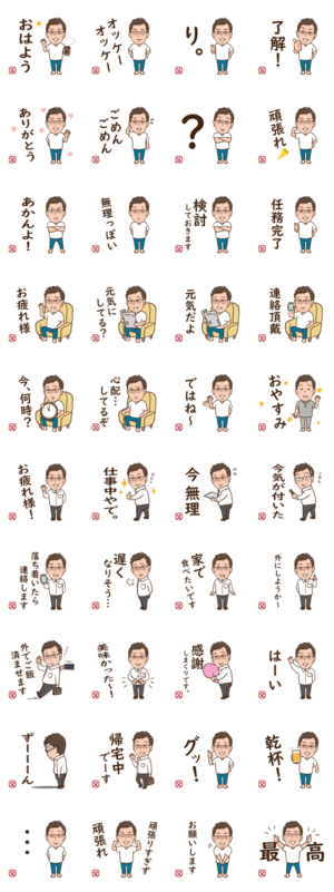 お父さんの愛が伝わる可愛いスタンプです。不器用な人でもこれなら使いこなせそう。