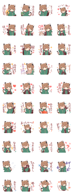 黒猫少年と白猫少年のお隣さん、三毛猫少年のスタンプ第七弾です。毎日使える丁寧な挨拶や日常会話、リアクションが沢山入っています。佐治 より発売