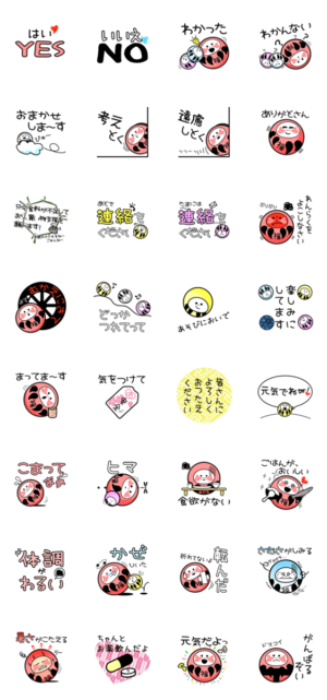 おばあちゃんが家族に送る、おばあちゃん仕様のスタンプをつくりました。 「おばあちゃん、たくさん連絡ちょうだいね」 そんな願いがこもっただるまさんたちです。