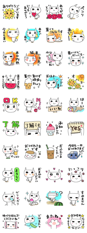 毎日うさきゅんの大人かわいい夏スタンプ。シンプルでカラフル明るいイラストと、見やすいくっきりデカ文字。暑い夏に毎日楽しく使えるフレンドリーな40個です。Konko3 より発売