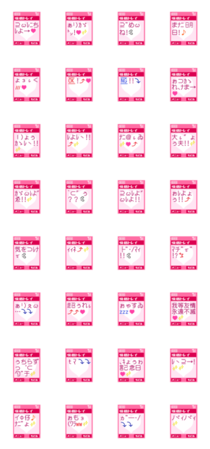 懐かしいガラケー(フィーチャーフォン)のメール画像をイメージしたスタンプ。昭和と平成生まれの元女子高生で大流行したギャル文字ver. 使いやすいもから懐かしいものまで