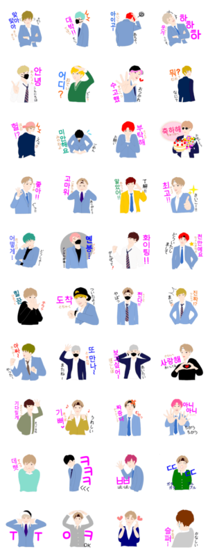 韓国語、日本語、ルビつき。K-POPボーイな感じのスタンプ第2弾です。 ハングル勉強中の人、韓ドラ、K-POPペンさんに♪