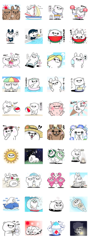 夏を満喫しているうさぎさんとくまさんのスタンプです。にぎやかなスタンプをラインに飾ってトークを盛り上げましょう!