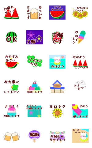 動く!誰でも使える会話スタンプ(夏スイカ)のダウンロードはこちら↓