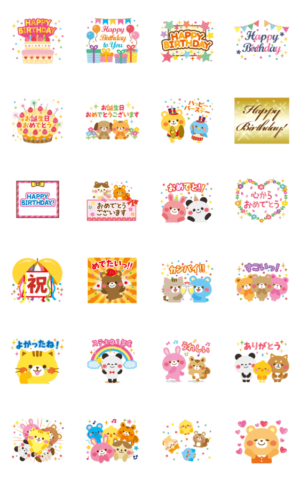 色んなお祝いの言葉が大きく飛び出すインパクトのあるスタンプ!送られた人もきっと嬉しいはず!