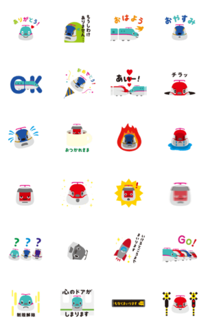 JR東日本の新幹線キャラクター「とれたんず」の毎日つかえるキュートなアニメスタンプ♪ 家族や友だち同士などいろんな人に送りやすい便利なフレーズが盛り沢山!