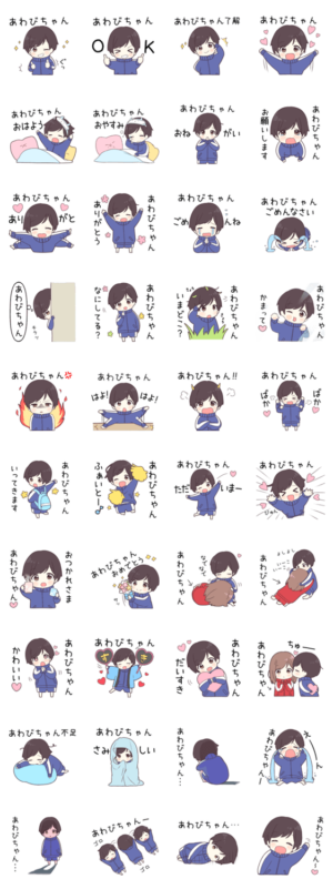 【あわびちゃん】に送る専用のジャージくんスタンプ第1弾です。大好きな「あわびちゃん」に呼びかけます。
