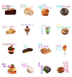 お菓子のダジャレスタンプです♪思わずとても食べたくなってしまいます(*≧∀≦*)スイーツが好きな方、是非ご購入下さい☆『作:main」main より発売