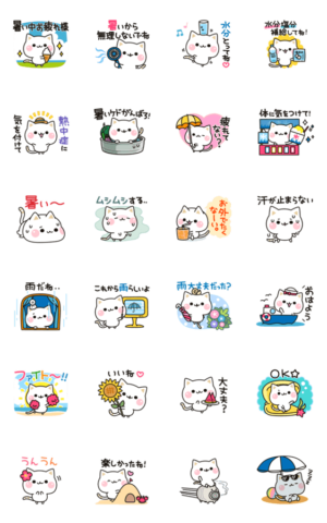 気遣いのできるねこに、夏のアニメーションスタンプが登場!暑さや夏バテに気づかいながら、楽しい夏をエンジョイしよう♪