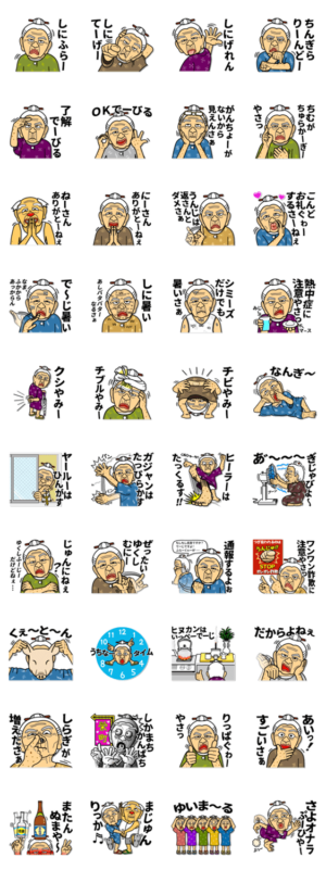 うちなーあびー【沖縄方言】練習ななち スタンプに書いてある文字一覧