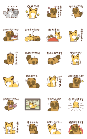 デフォルメがかわいいタヌキとキツネが動くスタンプ。丁寧な言葉遣いなので、年上の親戚相手にも使いやすいです。タヌキがありがとうございます!て動く仕草が特にお気に入りです。