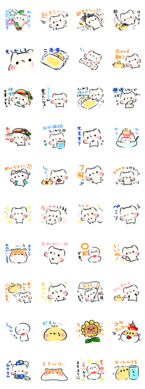 日常会話で使いやすい挨拶や応援に、夏に使いやすいスタンプも盛り込みました。かわいい中にもシュールな面白さが隠し切れない…贅沢なスタンプです。灯さかす より発売