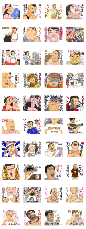 ちいちゃんが大好きな男達(オカマ1人含む)が集結したスタンプ。きもいスタンプだが彼女、奥さん、お友達も心の中は嬉しいはずだよ。だって君に愛されてるんだもん。けんと画伯 より発売