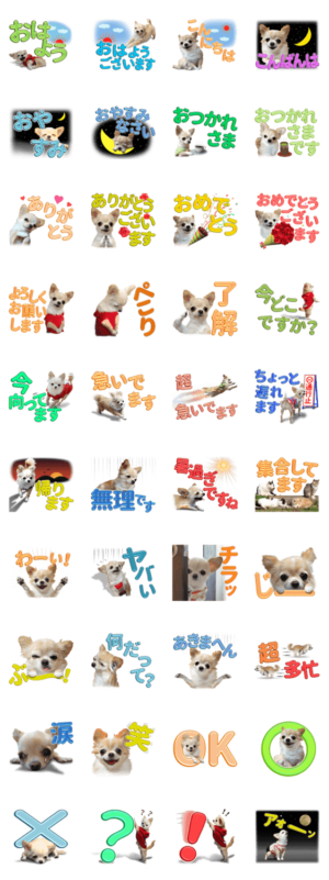 我が家のチワワの写真を使った、リアルな写真スタンプです。 文字大き目で読みやすくしています。 犬好きの方に、おすすめです。
