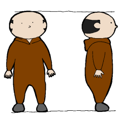 「どこでしょう?」「承知しました」など、なるべく自分の心境を、フードのツナギを着たおじさんに表現してもらいました。
