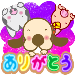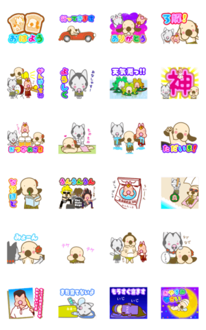 毎日の生活に使える挨拶や言葉が満載!ゆるく、可愛く、ときたまシュールなかわいいわんことぶたが大活躍です!文字はネオン調でカラフルで読みやすくシンプル!