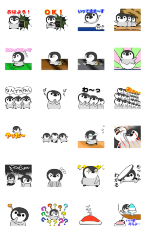 いつも元気いっぱいのペンギンのヒナたちが翔ぶ!跳ねる!ぐだる!とっても愉快なアニメーションスタンプです。Trinity より発売