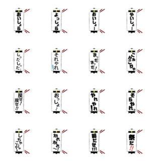 遠州人の大好物、お祭りに欠かせない掛け声です。仲間と楽しく!飲みの音頭にも!(前回作成したスタンプが画像サイズ小さかったから、改めて作成しました)トライスター より発売