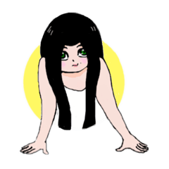 白いワンピースのかわいい女の娘。座敷のY子と仲良しコラボスタンプです。atsu より発売