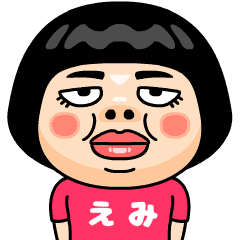 えみ(エミ)はとってもブスな女の子。自分の名前入りピンクTシャツを着るちょっと痛い子。自虐的だけどおはようからおやすみまで使える万能な名前スタンプです。