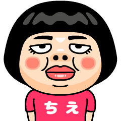 ちえ(チエ)はとってもブスな女の子。自分の名前入りピンクTシャツを着るちょっと痛い子。自虐的だけどおはようからおやすみまで使える万能な名前スタンプです。