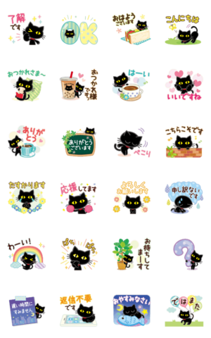 デフォルメされたくろねこの文字入りスタンプです。会話になじむ便利なスタンプです!