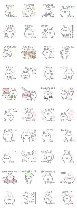 伝えるうさぎスタンプの新シリーズ。女子力高めのあやねさん専用スタンプです。キラキラしたかわいいうさぎと一緒に、日常会話を楽しんでください。