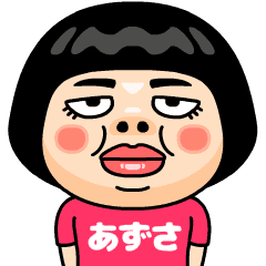 あずさ(アズサ)はとってもブスな女の子。自分の名前入りピンクTシャツを着るちょっと痛い子。自虐的だけどおはようからおやすみまで使える万能な名前スタンプです。