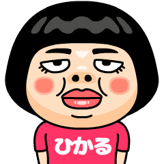 ひかる(ヒカル)はとってもブスな女の子。自分の名前入りピンクTシャツを着るちょっと痛い子。自虐的だけどおはようからおやすみまで使える万能な名前スタンプです。