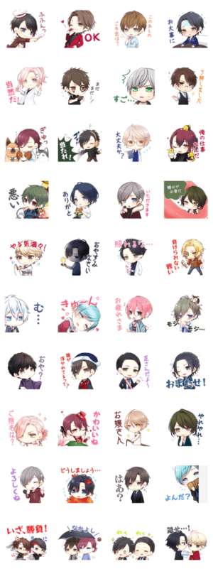 女性向けシナリオ×パズルゲーム「スタンドマイヒーローズ」の公式スタンプ第2弾です。今度はヒーローたちがミニキャラになってトークを盛り上げます!