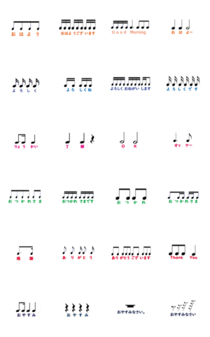 音楽好きのための毎日使えるスタンプ。挨拶など、リズムに合わせて会話が出来ます。声楽、ピアノ、打楽器、吹奏楽、バンド、オーケストラなど音楽仲間にお勧め。