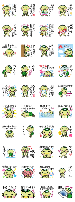 言葉遣いが丁寧(?)な癒し系のカッパさん スタンプ画像一覧
