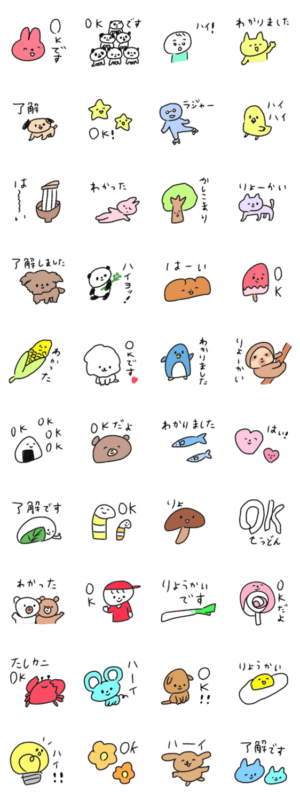 了解、OK、はい!のスタンプです。返事用に使ってねポポポーン より発売