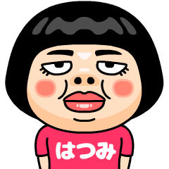 はつみ(ハツミ)はとってもブスな女の子。自分の名前入りピンクTシャツを着るちょっと痛い子。自虐的だけどおはようからおやすみまで使える万能な名前スタンプです。