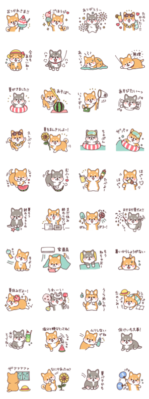 ころころ柴犬6 夏! スタンプに書いてある文字一覧