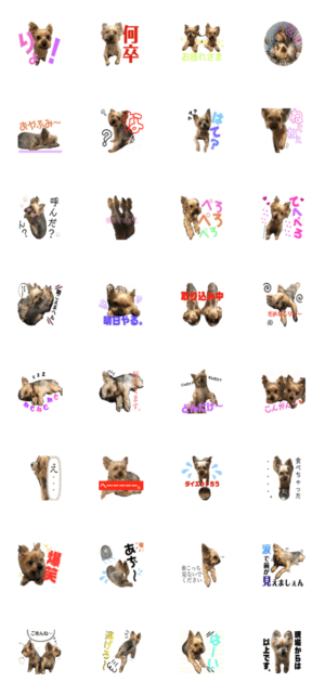 ヨークシャテリアの仲良しコンビ。日常で使いやすいスタンプです。あわびーる より発売