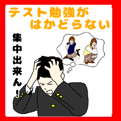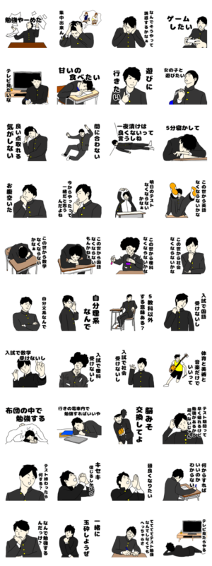 テスト勉強しようとしてもやる気が起きない。気が散る男子中高生のためのスタンプです。中学生も高校生も中間、期末テストの勉強に集中出来ない人集まれ